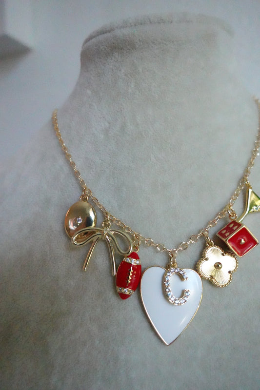 Heart football charm necklace