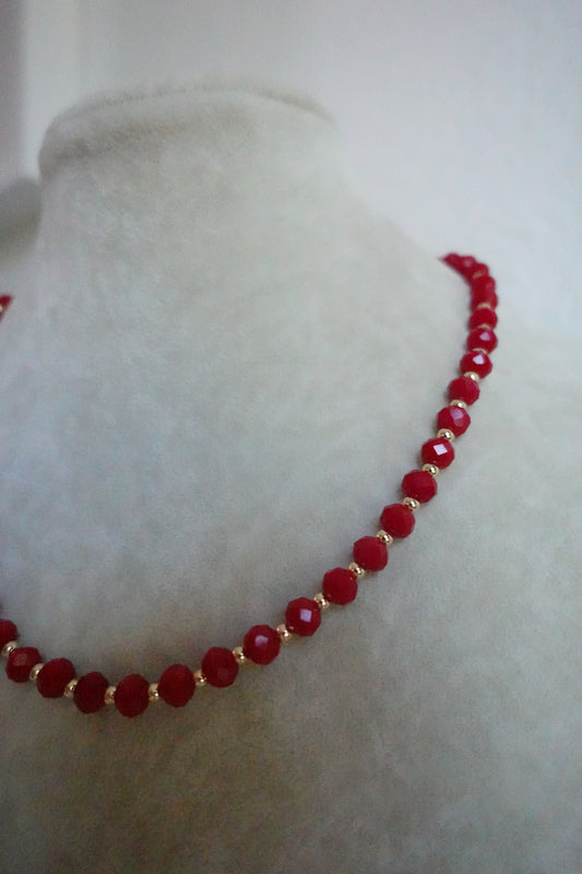 Beaded red and gold necklace